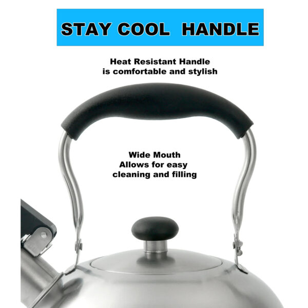 Mainstays 1.8-Liter Whistle Tea Kettle, Induction Compatible, Stainless Steel, Silver
