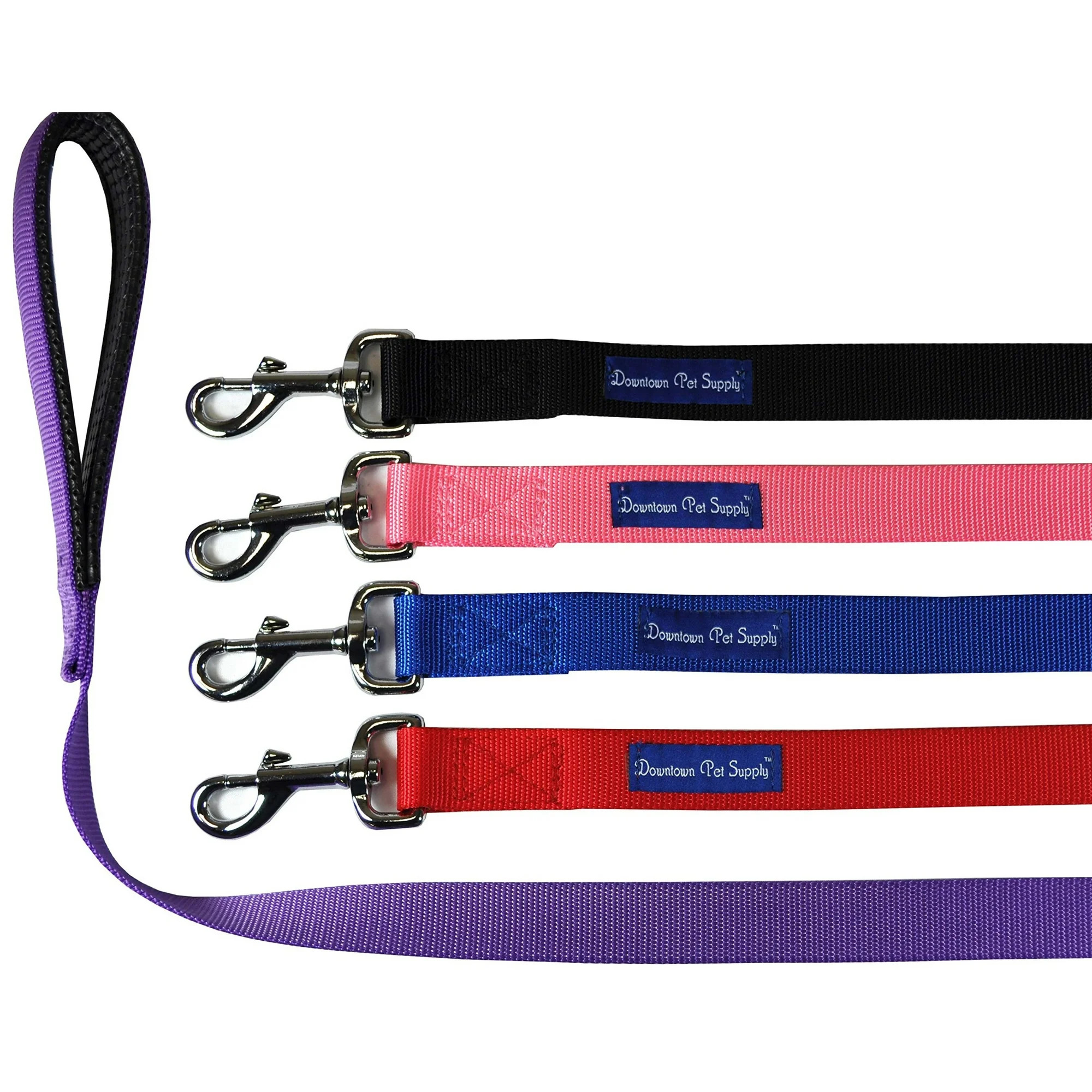 - Nylon Dog Leash: With easy to grip padded comfort handle and the convenient stainless fastener for quick on and off control. A choice of fun colors and sizes. Matching dog collar available