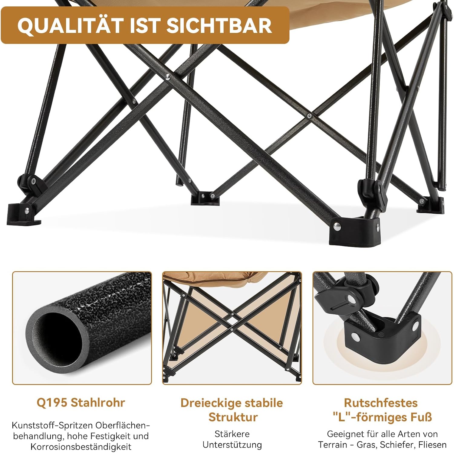 - 【Quality】Triangular stable structure for high grip. Oxford fabric cover to prevent cracks and for a long service life. The camping chairs are made of steel tube supports, corrosion-resistant and of high quality.