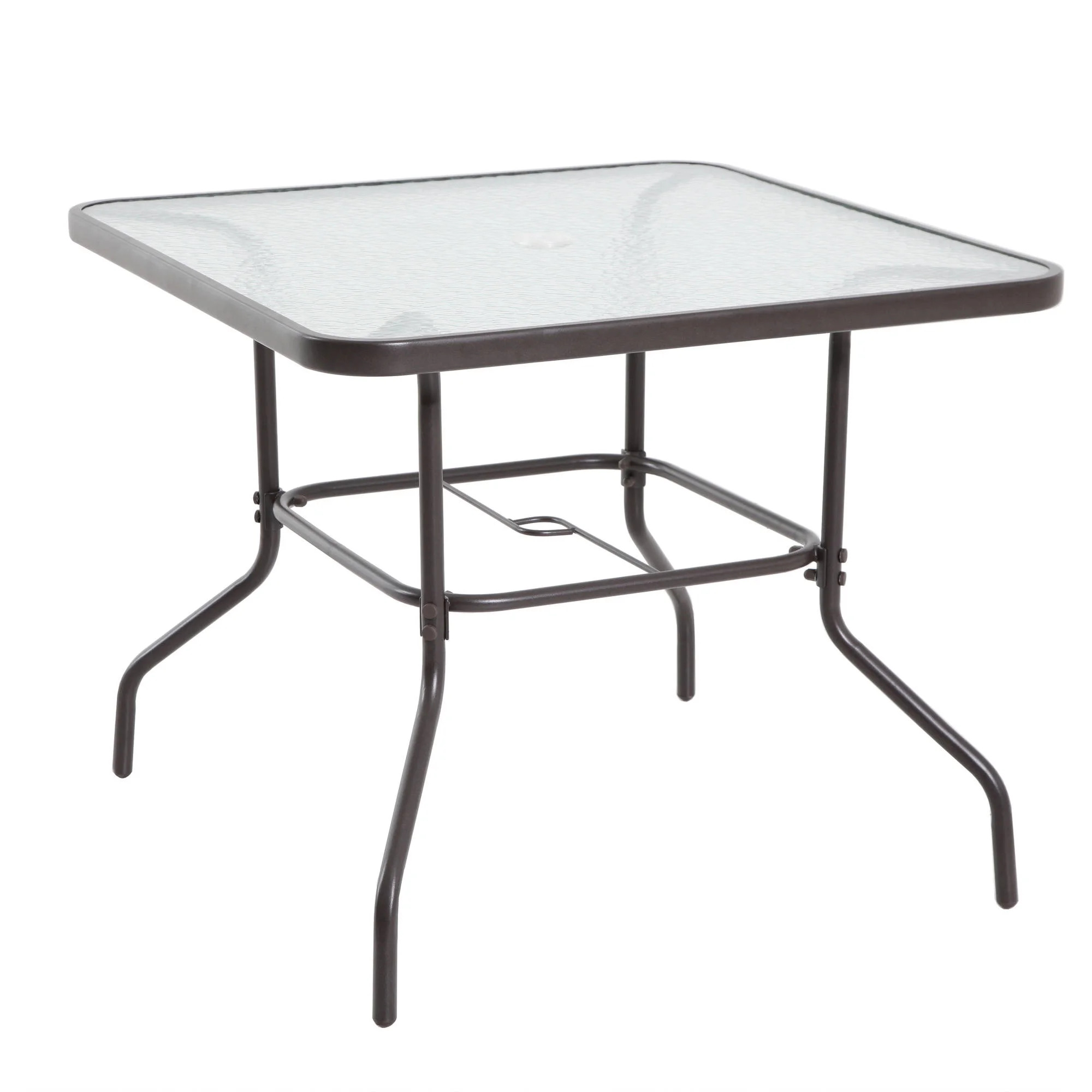 • Convenient Design: Includes 4 foldable armchairs, a square table with tempered glass top, and a stylish market umbrella